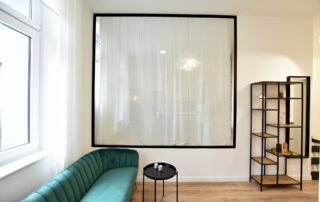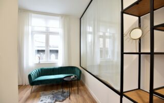 This apartment has many views… all thanks to the glass frame instead of a wall! The bedroom can be covered and uncovered depending on the mood.