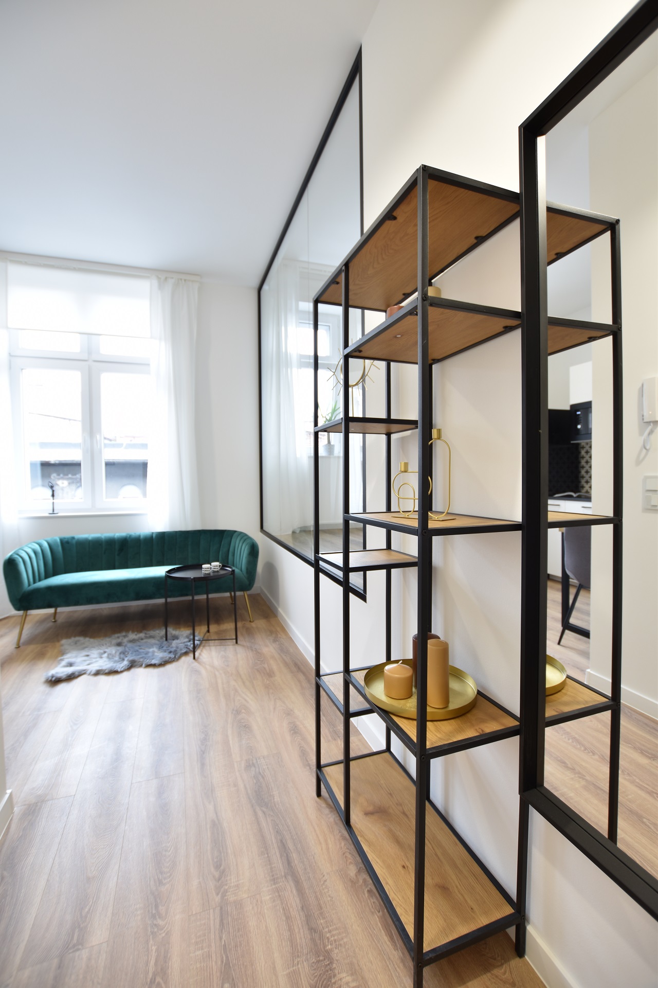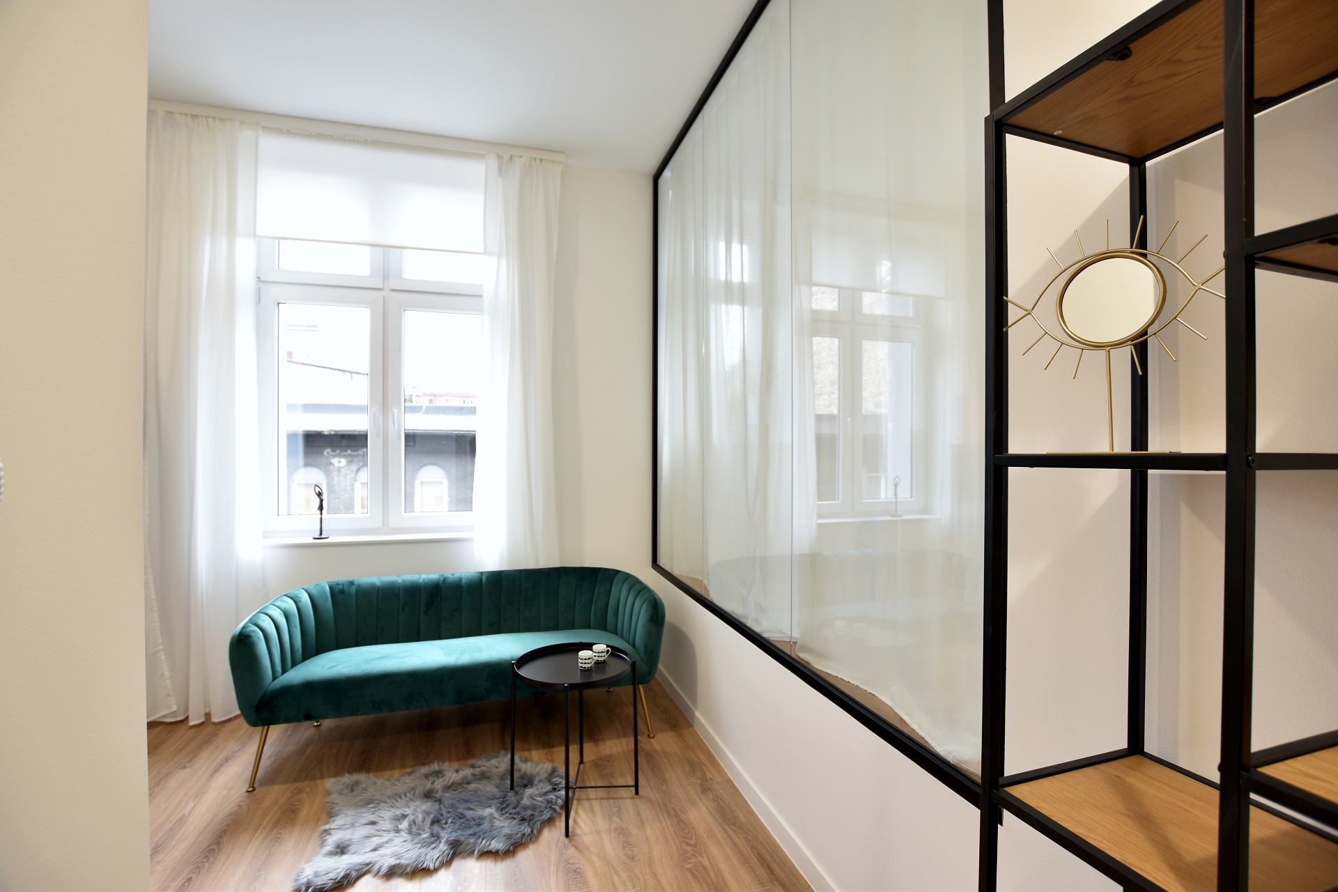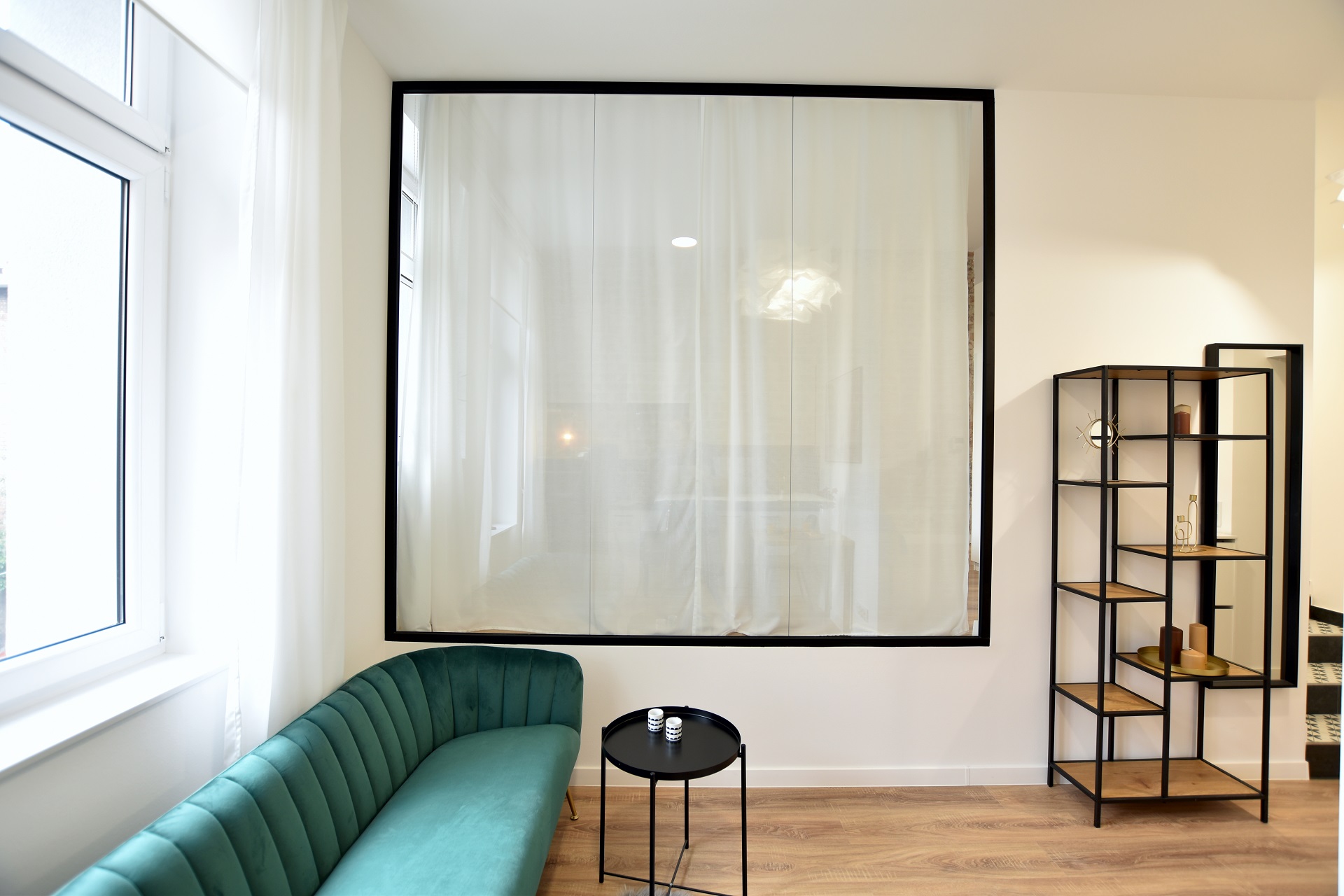 This apartment has many views… all thanks to the glass frame instead of a wall! The bedroom can be covered and uncovered depending on the mood.